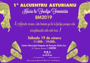 Este sábado día 19 de enero en el Centro Municipal Integrado de Pumarín, (C/Ramón Areces, Gijón), tendrá lugar el primer encuentro asturiano “hacia la huelga Feminista” 8M2019.